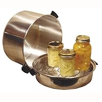 Save energy with the steam canner! It uses only 3 pints of water which cuts preheating time by 50%! This canner is so simple - it takes the sweat out of home canning.Use like a water bath canner for high acid foods, and eliminate the heavy lifting. (This steam canner is not to be used instead of a pressure canner.) The cover doubles as a 15 qt. kettle or stockpot. Heavy gauge aluminum. 7-quart capacity. Dimensions: 11-3/4 inch dia.; bottom is 1-3/4 inch deep; lid is 6-1/4 inch high.(Canner is not recommended for glass or ceramic top stoves.)