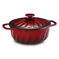A Southern take on the classic Dutch oven, this 3-1/2-quart cast iron round casserole from venerable Southern cook Paula Deen is a great choice for slow-cooking and simmering everything from soups and stews to hearty chili and braised meats. The exterior features a two-toned porcelain enamel in burgundy with a unique swirl pattern that's resistant to stains and a breeze to clean up. The casserole's cast iron core guarantees even heat distribution, so your food won't burn and it will remain hot throughout your meal. Broiler safe, you can also use this casserole out on your grill. The spacious, solid cast loop handles on either side make it easy to grip it confidently, even with bulky potholders or mitts. Hand wash only. Backed by a 1-year warranty.